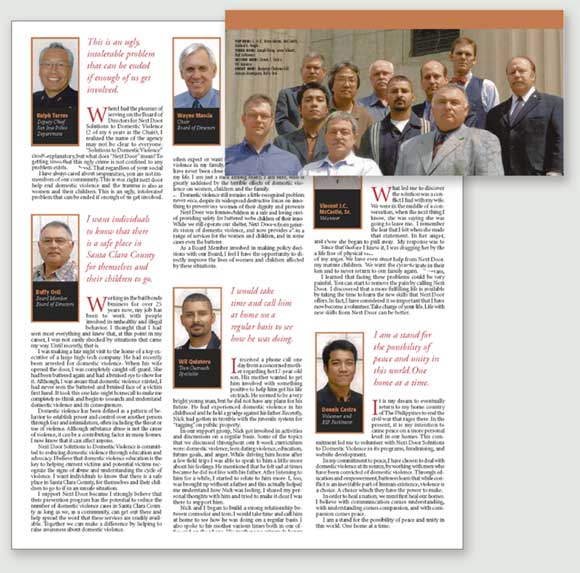 Acknowledging your supporters, especially in a public forum, is one way to honor their commitment to your cause. For this newspaper insert, the pro-bono photographer called the morning of the photo shoot to cancel. There was no time to contact all these supporters, and I didn’t want to loose their trust, so I called a friend, set up my tripod, and took the photo myself. I also took the head shots and worked with the men who gave their statements.